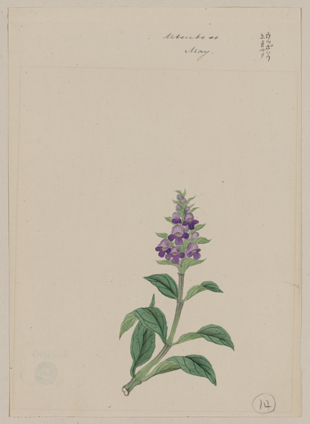 TITLE: Utsubo sô - May CALL NUMBER: FP 2 - JPD, no. 1166 (A size) [P&P]Restricted access; material extremely fragile; please use online digital image. REPRODUCTION NUMBER: LC-DIG-jpd-01247 (digital file from original print) RIGHTS INFORMATION: No known restrictions on publication. SUMMARY: Drawing shows stalk with purple blossom and leaves of a plant identified as a Common Asian Selfheal (Prunella vulgaris asiatica), commonly known as utsugo gusa. MEDIUM: 1 drawing : ink, color ; 21.3 x 15.3 cm (sheet) CREATED/PUBLISHED: [187-] NOTES: Title from item. Japanese text appears in upper right corner. From "Flowers" series. Gift; Mrs. David Murray; 1909. Forms part of: David Murray collection. Forms part of: Japanese prints and drawings (Library of Congress). SUBJECTS: Prunella vulgaris. Flowers--Japan--1870-1880. Leaves--1870-1880. FORMAT: Ink drawings Japanese Color 1870-1880. REPOSITORY: Library of Congress Prints and Photographs Division Washington, D.C. 20540 USA http://hdl.loc.gov/loc.pnp/pp.print DIGITAL ID: (digital file from original print) jpd 01247 http://hdl.loc.gov/loc.pnp/jpd.01247 CONTROL #: 2009630286